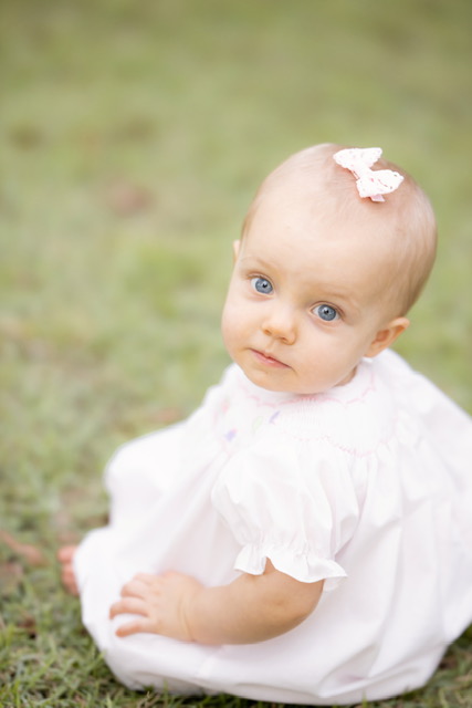 I put Charlotte in the dress I smocked for her. This might be the only time she wears it, but it sure looks cute on her! Of course, I was worried it would get dirty! I wish this little one would start walking so I could put her in more things.
